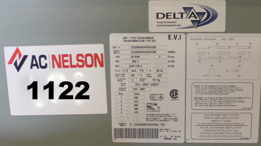45 kVA DELTA Reconditioned Transformer 600-600/347V Cat No CD3C0045VVA6XXBD SKU 3205