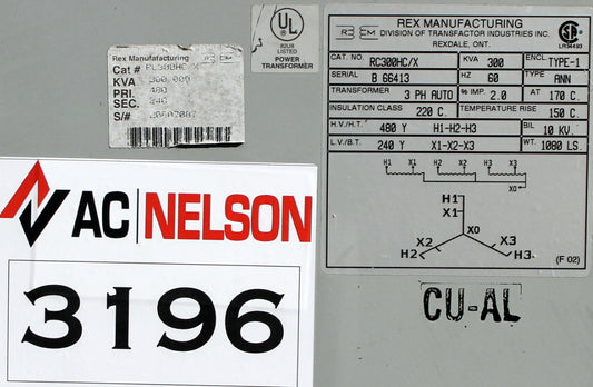 300 kVA REX Reconditioned Transformer 480-240V Cat No RC300HC/X SKU 3196