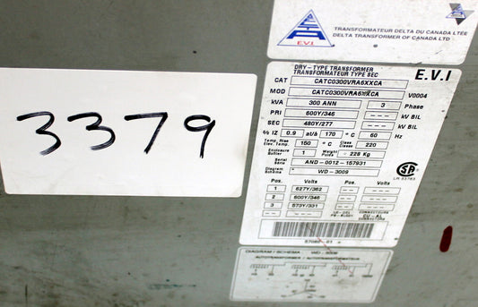 300 kVA Delta Reconditioned Transformer 600/346-480/277V Cat No CATC0300VRXXCA SKU 3379