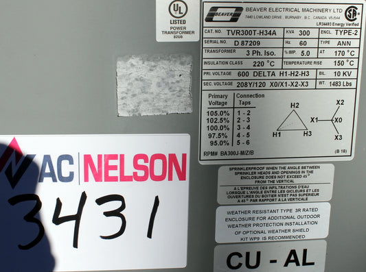 300 kVA Rex Reconditioned Transformer 600-120/208V Cat No TVR300T-H34A SKU 3431