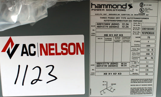 75 kVA HPS New Transformer 600-480V Cat No YO75PKCN3LOU SKU 1123