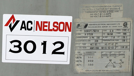 6 kVA REX Reconditioned Transformer 480-480/266V Cat No DC6H1P1/50/K4 SKU 3012