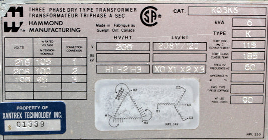 6 kVA HPS Reconditioned Transformer 208-120/208V Cat No K63KS SKU 3040