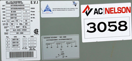 30 kVA DELTA Reconditioned Transformer 230/133-208/120V Cat No C0030JHA6XXCA SKU 3058
