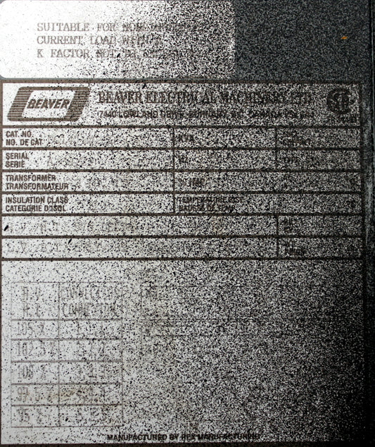 6 kVA BEAVER New Transformer 208D-600Y/347V Cat No TER6H-T34C SKU 1022