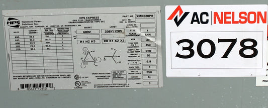 30 kVA HPS Reconditioned Transformer 600-120/208V Cat No XMK030PB SKU 3078