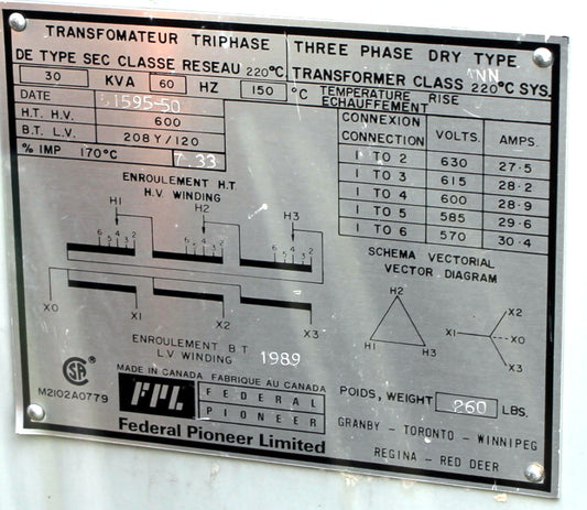30 kVA FPE Reconditioned Transformer 600-120/208V Cat No SKU 3089