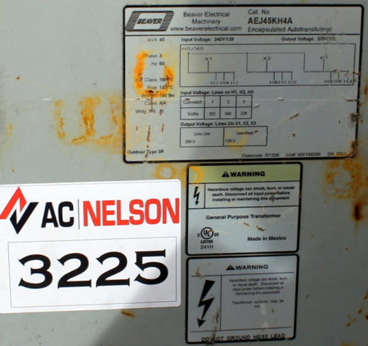 45 kVA REX Reconditioned Transformer 240/139-208/120V Cat No AEJ45TS4A SKU 3225