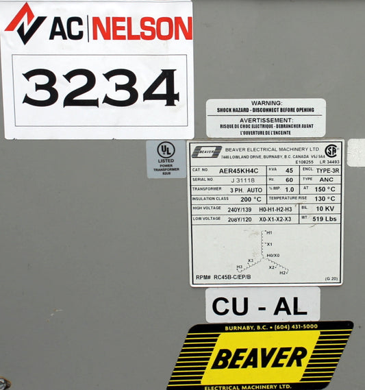 45 kVA REX Reconditioned Transformer 240/139-208/120V Cat No AER45KH4C SKU 3234