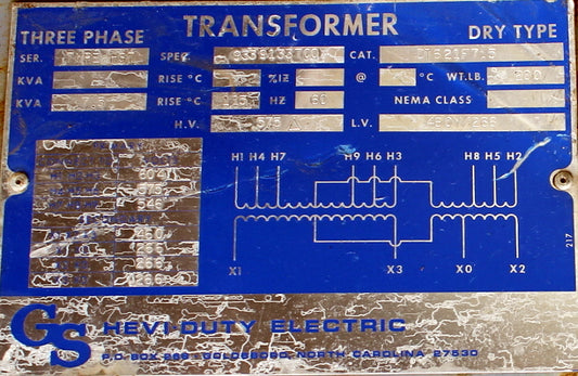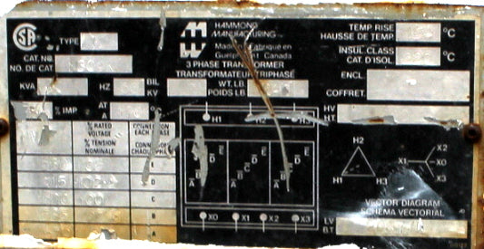 15 kVA HPS Reconditioned Transformer 480-120/208V Cat No K154K SKU 3440