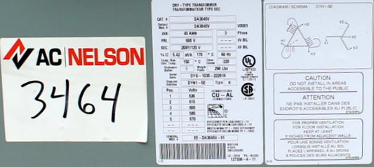 45 kVA Delta Reconditioned Transformer 600-120/208V Cat No DA3045V SKU 3464