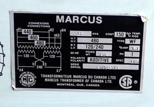25 kVA Marcus Reconditioned Transformer 480-120/240V Cat No 13051-585 SKU 3469