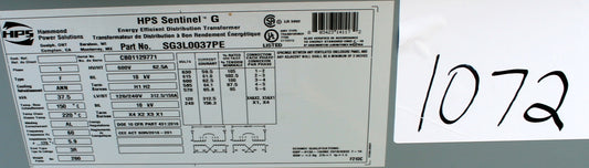 37.5 kVA HPS New Transformer 600-120/240V Cat No XG3L0037PE SKU 1072