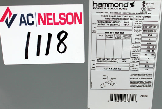 150 kVA HPS New Transformer 600-480V Cat No Y150PKCH3LOU SKU 1118