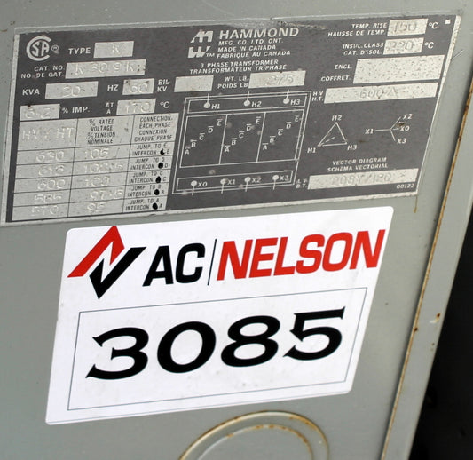 30 kVA HPS Reconditioned Transformer 600-120/208V Cat No K309K SKU 3085