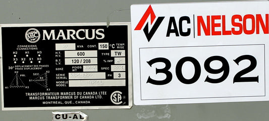 30 kVA MARCUS Reconditioned Transformer 600-120/208V Cat No MT30A1 SKU 3092