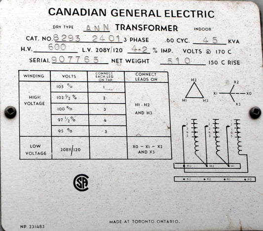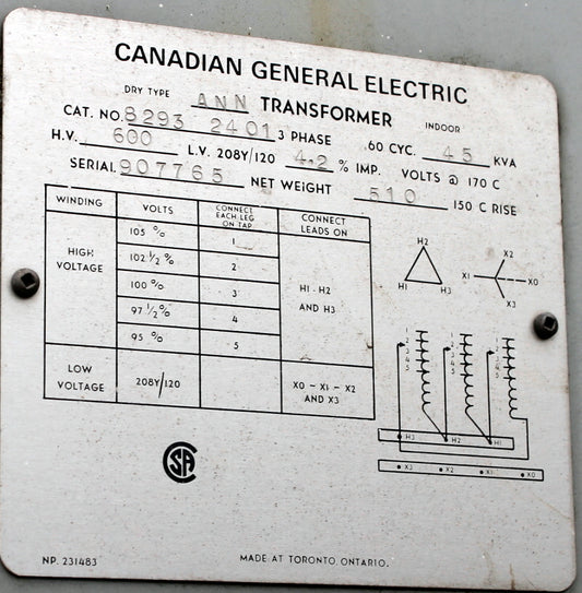 45 kVA GE Reconditioned Transformer 600-120/208V Cat No SKU 3111