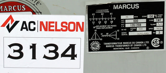 30 kVA MARCUS Reconditioned Transformer 600-120/208V Cat No 5635-485 SKU 3134