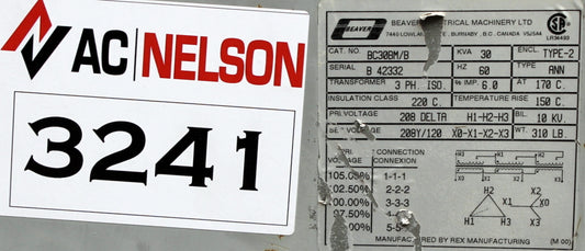 30 kVA REX Reconditioned Transformer 208-120/208V Cat No BC30BM/B SKU 3241