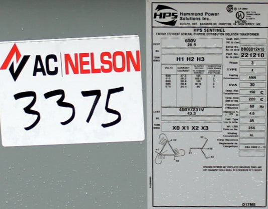 30 kVA HPS Reconditioned Transformer 600-400/231V Cat No 221210 SKU 3375