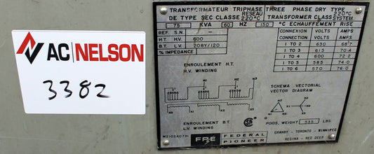 75 kVA FPE Reconditioned Transformer 600-120/208V Cat No 50609-29 SKU 3382